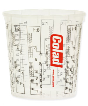 Zcela bez silikonu - Vyrobeno z přizpůsobeného polypropylenu - Vysoká průhlednost pro optimální viditelnost směšovacích poměrů - Antistatický - Bez ftalátů - Navrženo pro jednorázové použití – Doplněno o stupnici pro ředění od 5 do 30 % - Spálení tohoto plastu nebude mít za následek vznik škodlivých plynů - 2 měřící stupnice - mililitry a kapalné unce. Poměry tužení: 1:1, 2:1, 3:1, 4:1, 5:1, 6:1, 7:1, 10:1