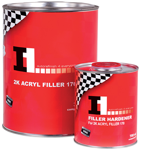 Akrylátový plnič 2K Acryl filler 170 je charakteristický vysokým stupňem plnění, dobrou zpracovatelností, optimálním rozlivem a mechanickou odolností. Velmi rychle schne a snadno se brousí. Nezanáší brusný papír. Může se přibarvit rozpouštědlovými bázemi v poměru do 5 %.