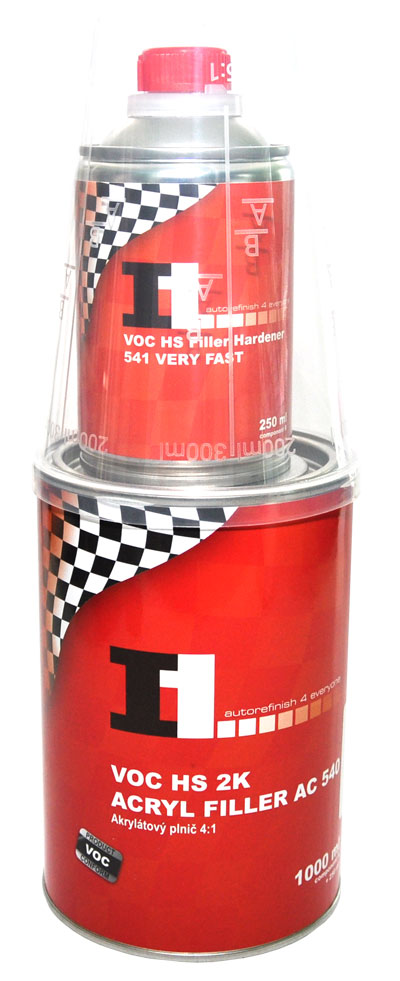 Univerzální akrylátový plnič VOC HS 2K Acryl filler AC 540 má vzhledem k vysokému obsahu sušiny (70%) velmi dobré plnící vlastnosti a široké možnosti použití. Lze jej aplikovt na kov, OEM náhradní díly, KTL primery, GRP, polyesterové tmely, atd.. Aplikuje se v 1-3 vrstvách, velmi snadno se brousí a má minimální spotřebu brusného materiálu jak při suchém, tak mokrém broušení. VOC HS 2K Acryl filler AC 540 lze nanášet i v silnějších vrstvách, poskytuje excelentní antikorozní vlastnosti a optimální přilnavost.