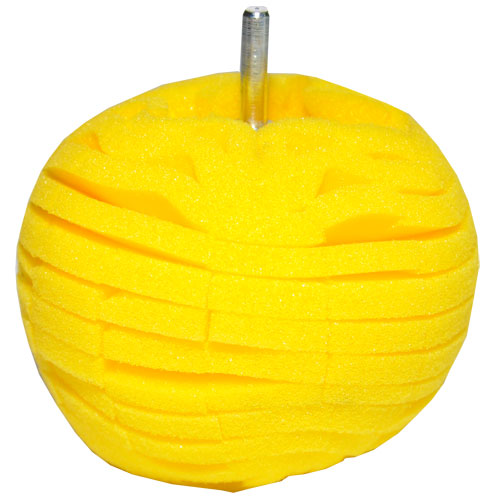 Pěnová leštící koule žlutá středně tvrdá 75 mm s upínacím trnem 6 mm pro leštění špatně přístupných míst.