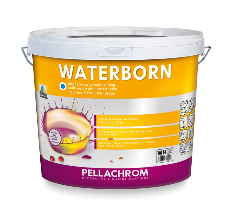 WATERBORN je dispersní malířská barva s vysokou bělostí pro vnitřní použití, ředitelná vodou. Aplikuje se na nové i staré povrchy jako vápenocementové omítky, sanační omítky, beton, sádrokarton, dřevotřísku a povrchy upravené stěrkou. Má vysokou krycí schopnost, vydatnost a přilnavost. Jednoduše se aplikuje, rychle schne. Vyniká velmi dobrým difuzním odporem. | ||